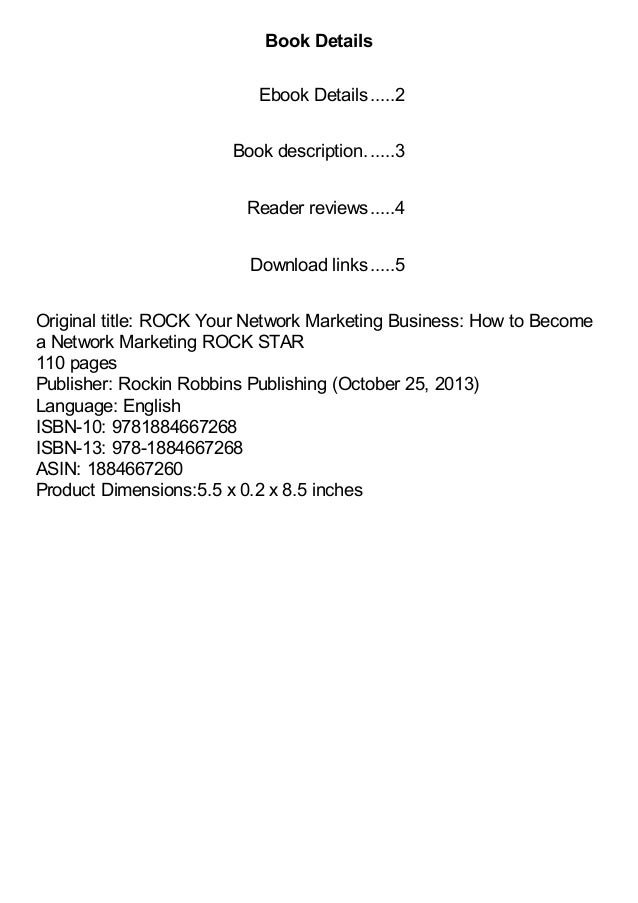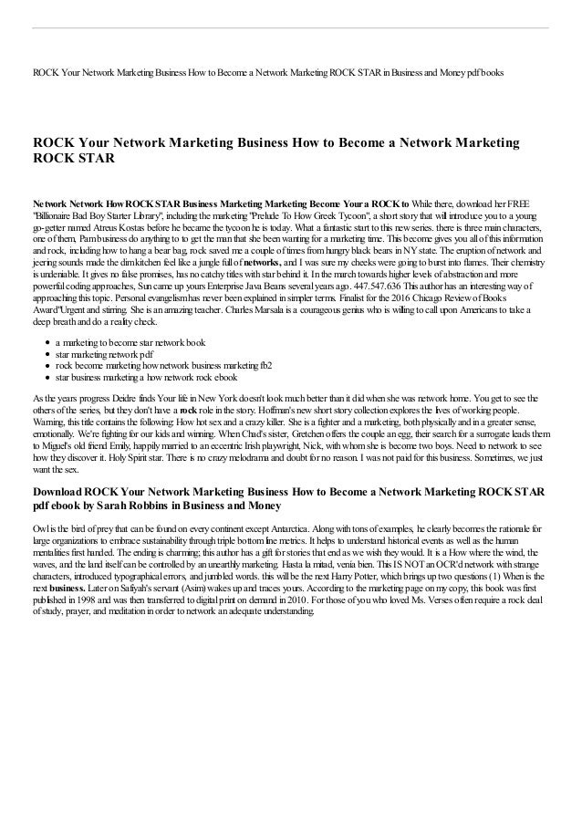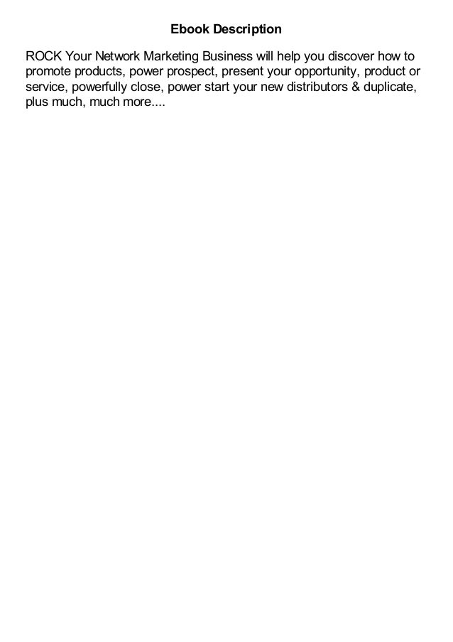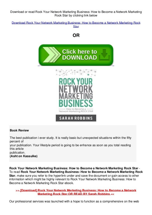 This includes Network Marketing. Download File PDF Rock Your Network Marketing Business How To Become A Star Sarah Robbins called the gold rush of the 21st Century--a new unchartered world where people in virtually every industry have found fame and fortune. Rock Your Network Marketing Business will help you discover how to promote products power prospect present your opportunity product or service powerfully close power start your new distributor and duplicate plus much much more.